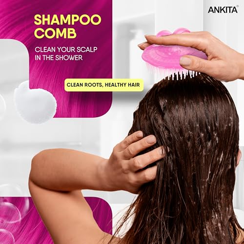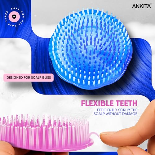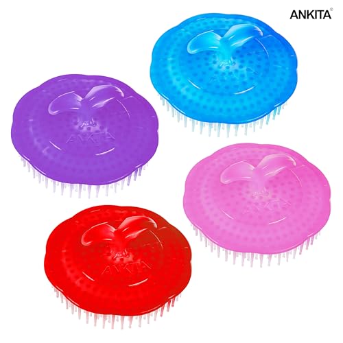 Ankita Hand Grip Round Comb & Scalp Massager | Small Round Hair Comb Shampoo Brush Scalp Massage | Tangle Eraser Detangling Brush |Soft Bristles for Gentle Scalp Care, Deep Cleaning, Dandruff Prevention, Oil Control, Relaxing Head Massage| Combo Pack of 4 Multicolor