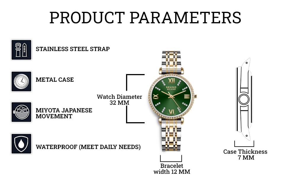 BRUNO MILANO Luxe Diamond Studded Bezel Watch for Women and Girls