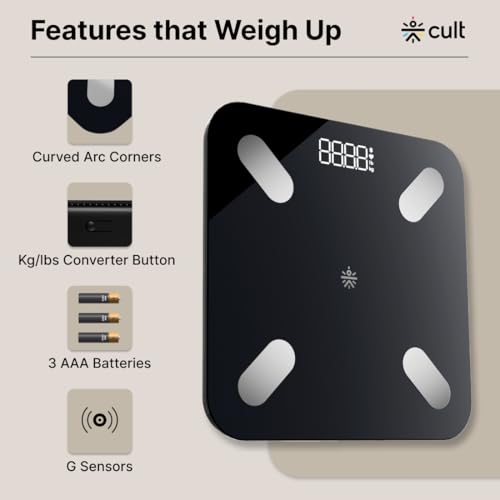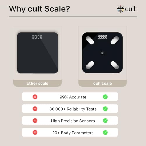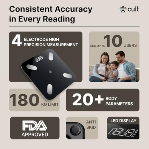 Cult Smart Body Fat Scale, US FDA Approved, 20+ Parameters, BMI, 10 members, Bluetooth Weight Machine, Body Fat Analyzer, LED Display.