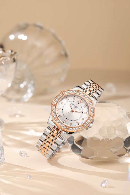 Daniel Hechter Paris Vendome Collection Analog Watch for Women with Crystal Studded Bezel, Crystal Accents and Stainless Steel Strap