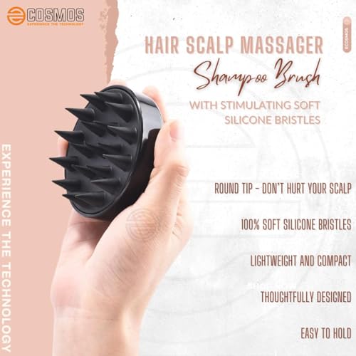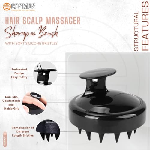 E-COSMOS® Hair Scalp Massager Shampoo Brush with Soft Silicone Bristles Kitchen for Anti Dandruff Removal Head Massager Prevents Hair loss for Men, Women (BLACK)
