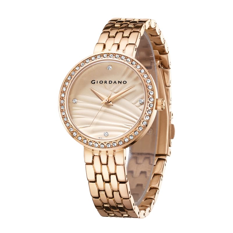 Giordano Analog Stylish Watch for Women with Crystal Bezel & Textured Dial and Stainless Steel Strap