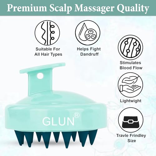 Be the first to review “GLUN® Round Scalp Massager Turquoise Colour Pack of 1, Shampoo Brush Super Soft Bristles for Hair Cleansing & Anti-Dandruff Treatment Accessories”
