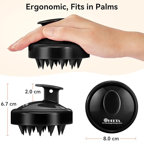 HEETA Scalp Massager Shampoo Brush: Gentle Head Massager for Hair Growth & Relaxation -Silicone Scalp Scrubber for Deep Cleaning, Dandruff Prevention & Oil Control – Soft Bristles Hair Care, Black