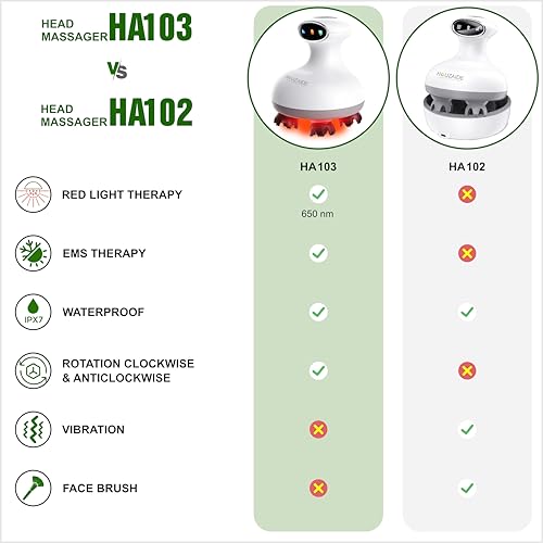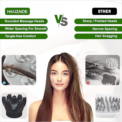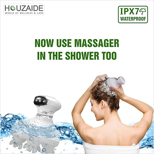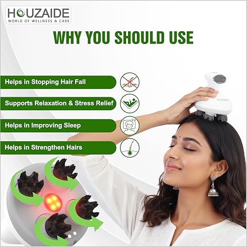 Houzaide Head Massager for Scalp — EMS & Red Light Therapy Hair Massager for Hair Growth — Rechargeable, 3D Kneading Scalp Massager for Deep Cleansing — 1 Year Warranty — Diwali Gifts Option