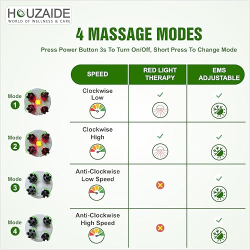 PERSONALIZED MASSAGE MODES & SPEED SETTINGS – Tailor your experience with 2 adjustable speeds (low/high) and multiple massage modes including EMS, rotation, and combination settings. Create your ideal scalp massage by pairing EMS with kneading or adjusting speed to match your comfort – perfect for relaxation, hair stimulation, or daily stress relief.