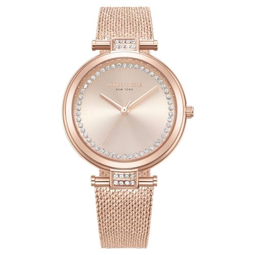 A graceful blend of modern charm and timeless allure, this Kenneth Cole watch is designed with a radiant rose gold dial paired with elegant rose gold hands. The polished rose gold bezel and shimmering crystal embellishments around the dial exude sophistication, while the mesh stainless steel strap adds a refined contemporary touch. Perfect for both everyday elegance and special occasions, this timepiece is a statement of chic style.