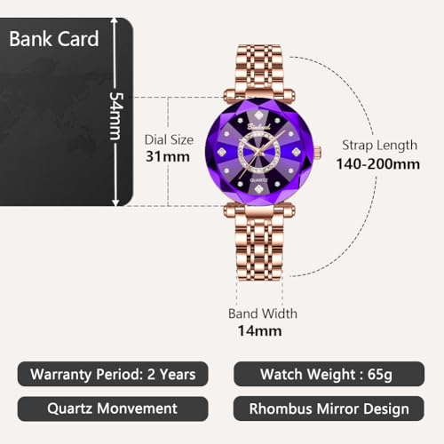 Ladies Watches for Women Analog Rose Gold Diamond Studded Stylish Women’s Watch Branded Stainless Steel Quartz Dress Wrist Watch Waterproof Luminous