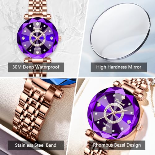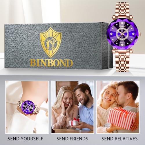 BINBOND Ladies Watch Rose Gold Diamond Studded Dainty Stainless Steel Quartz Watches for Women Minimalist Waterproof Fashion Womens Watch