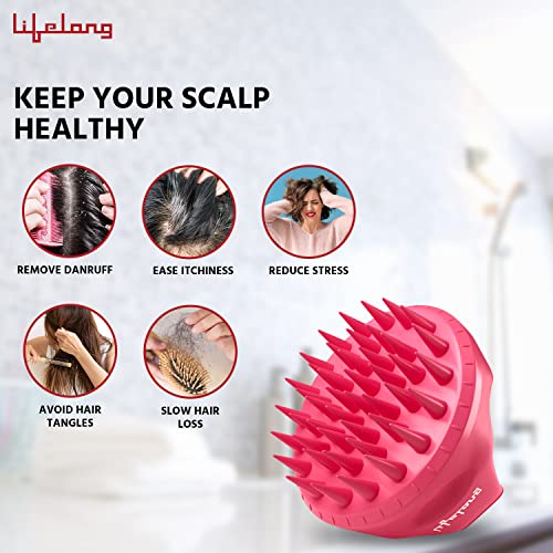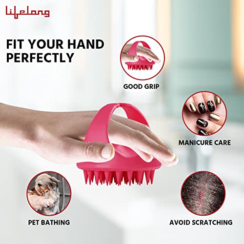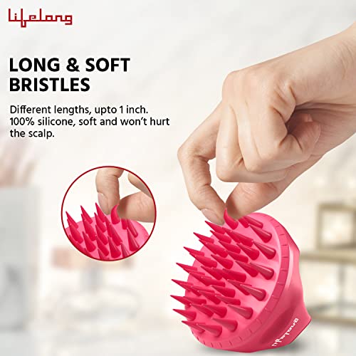Lifelong Silicone Scalp Massager Shampoo Brush with Body Scrubber | Soft Silicone Hair Scrubber for washing hair, Scalp Brush for Hair Growth & Dandruff Treatment |Wet Dry Hair Massager for All Hair Types of Women(Pink, LLM675)