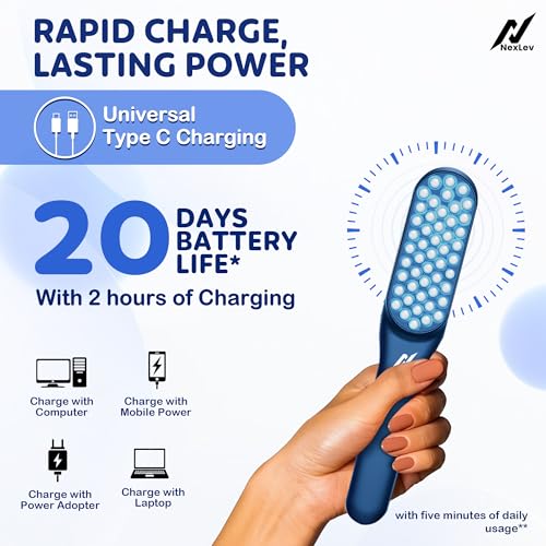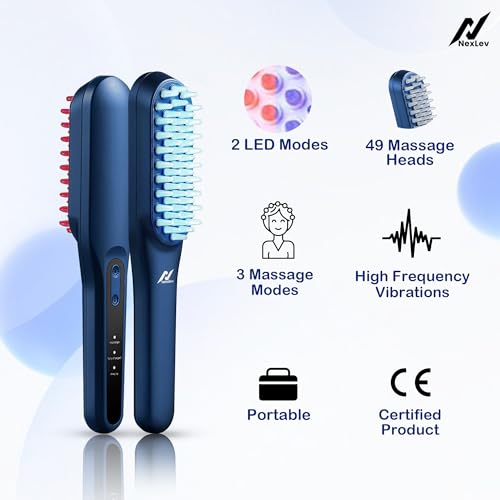 Importer : NexLev LED Hair Therapy Comb | Scalp Massager | Red Light for Hair Growth|Blue Light to Reduce Dandruff | Hair Fall Control Type C | 90 Min Use Time | Targeted Laser Hair Growth Treatment|3 Modes|LE-02