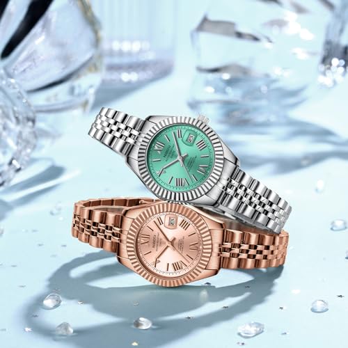 NIBOSI Watches for Woman Analog Quartz Stainless Steel Diamond Rose Gold Green Small Dial Women Watches Classic Wrist Watch Date Waterproof