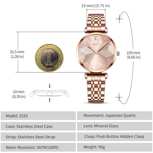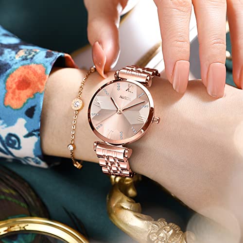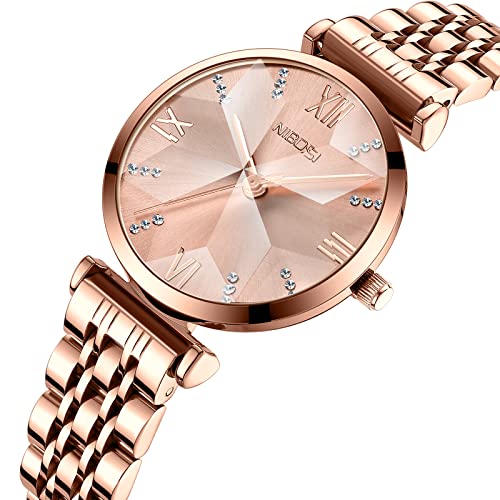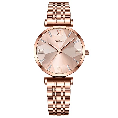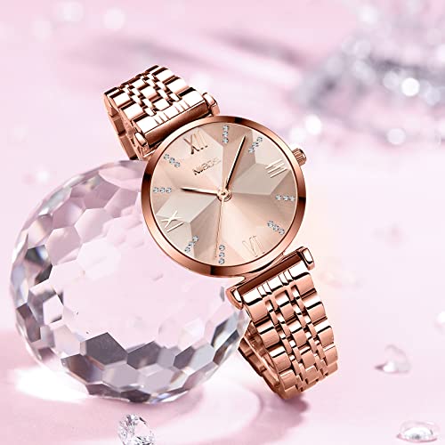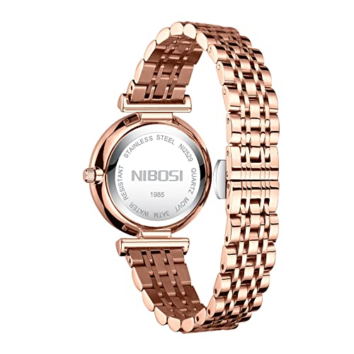NIBOSI Women Stainless Steel Watches Analog Rose Gold Band and Square Dial Women’s Watch for Girls&Miss&Ladies Diamond Studded with Stylish Watches Waterproof