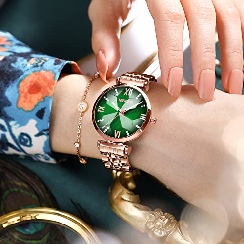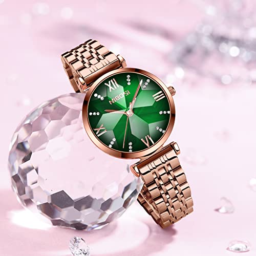 NIBOSI Women Stainless Steel Watches Analog Rose Gold Band and Square Dial Women’s Watch for Girls&Miss&Ladies Diamond Studded with Stylish Watches Waterproof