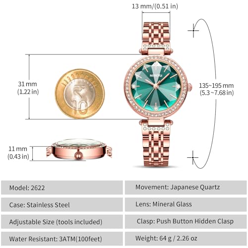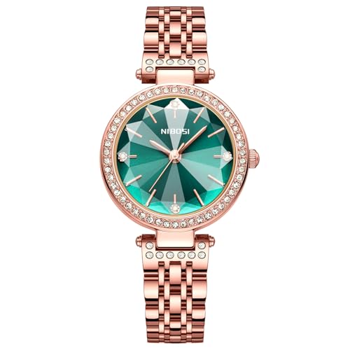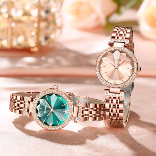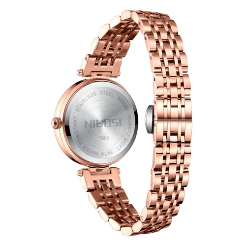 NIBOSI Women Stainless Steel Watches Analog Rose Gold Band and Square Dial Women’s Watch for Girls&Miss&Ladies Diamond Studded with Stylish Watches Waterproof
