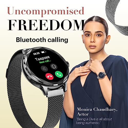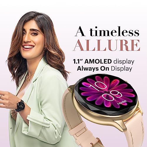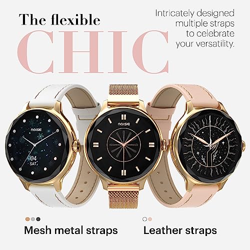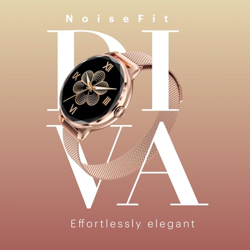 Noise Diva Smartwatch with Diamond Cut dial, Glossy Metallic Finish, AMOLED Display, Mesh Metal and Leather Strap Options, 100+ Watch Faces, Female Cycle Tracker Smart Watch for Women (Gold Link)