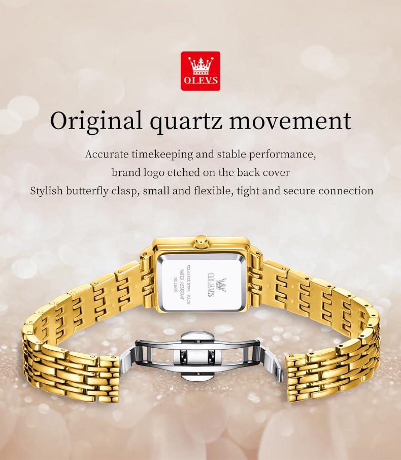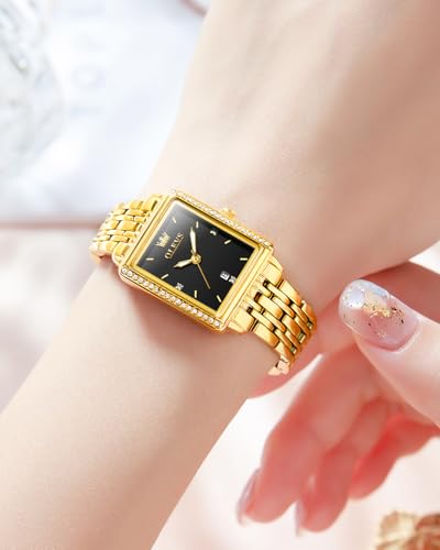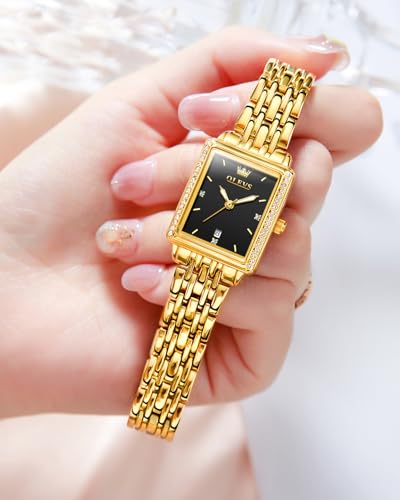 OLEVS Gold Watches for Women Original Luxury Small Square Diamond Wrist Watch Analog Quartz Stainless Steel Waterproof Stylish Ladies Watch Date