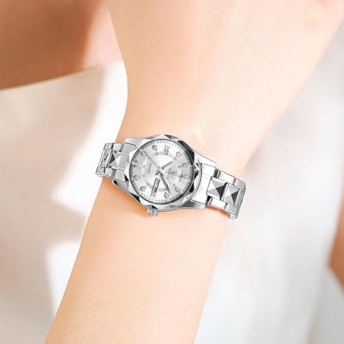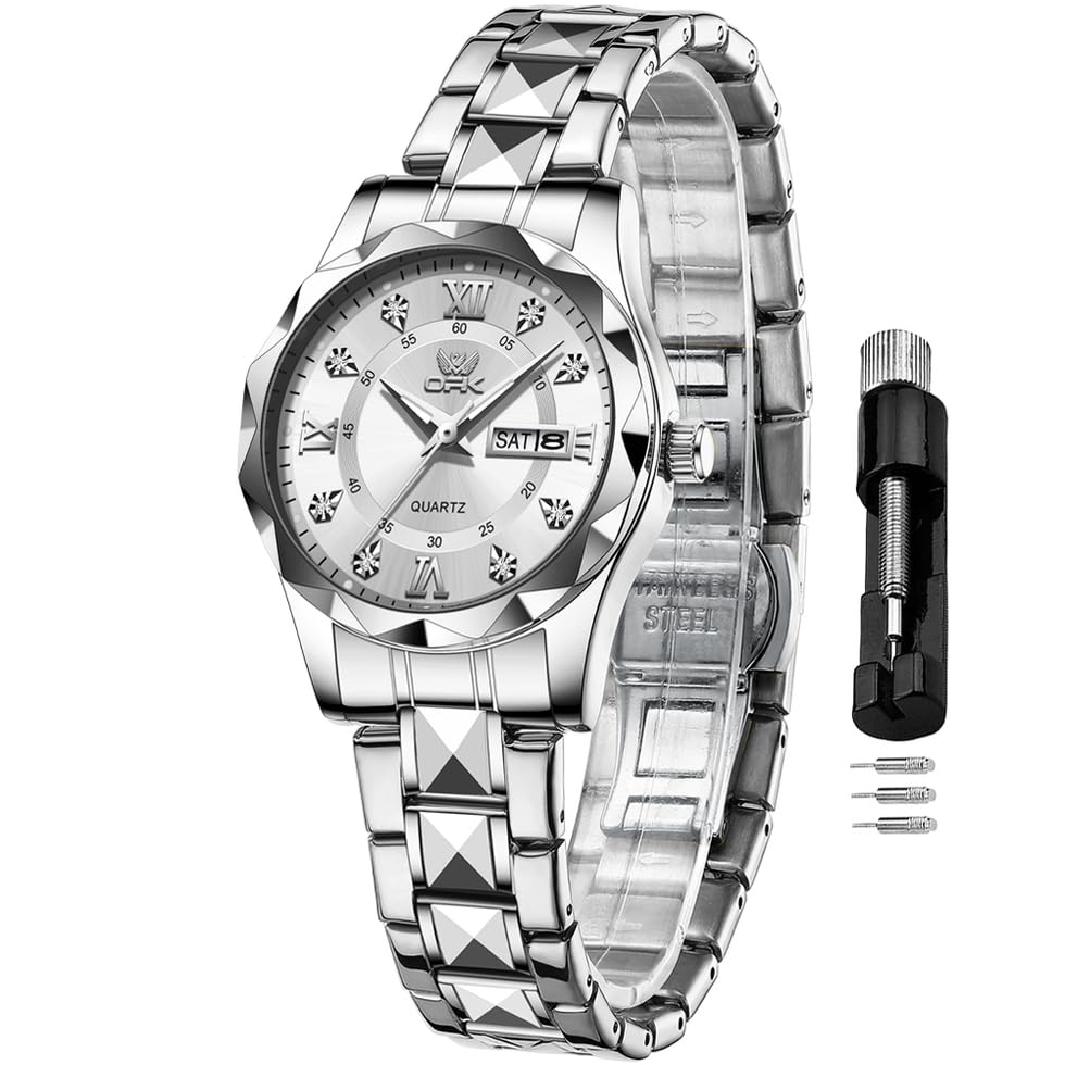 OPK Watch for Women Bling Diamond Business Female Watch Stainless Steel Easy to Read Small Ladies Wrist Watches Luminous Waterproof