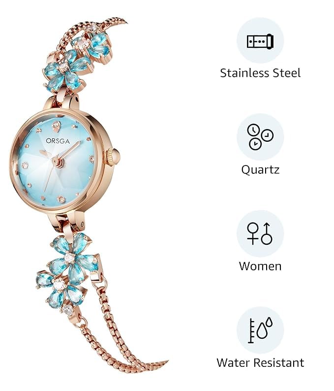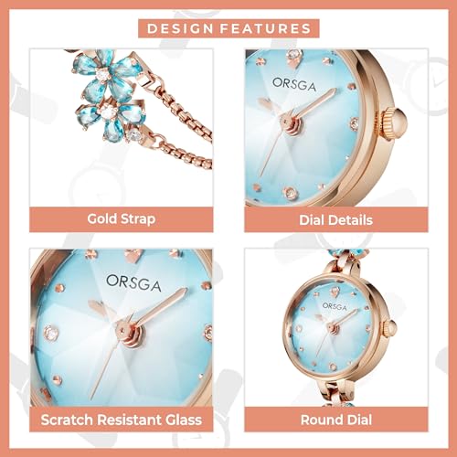 ORSGA Fleur Bracelet Watch for Women Dial Flower Chain Watches Analog Ladies Latest Stylish Diamond Wrist Gift Anniversary Birthday