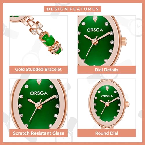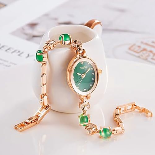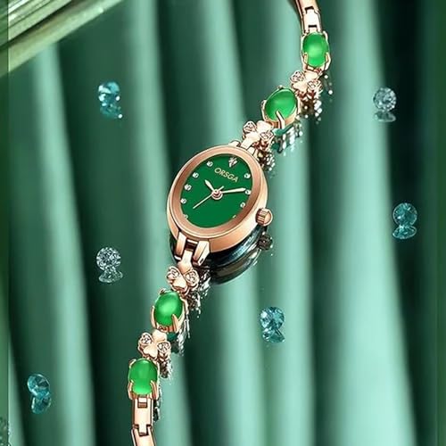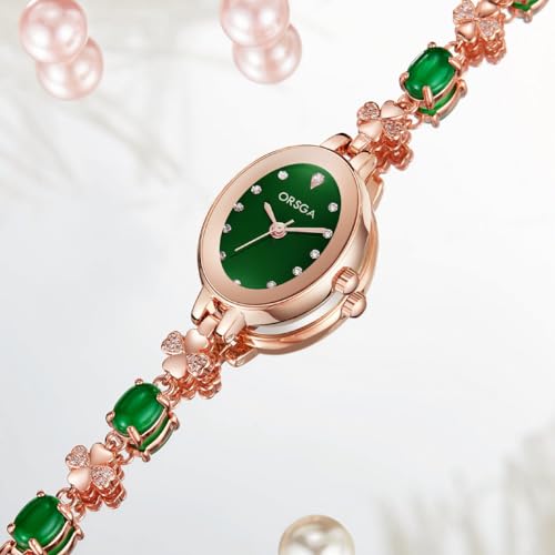 ORSGA Stainless Steel Women Watches Jadeire Watch for Women Analog Wrist Rose Gold Green Dial Bracelet Ladies Watch Women&Girls