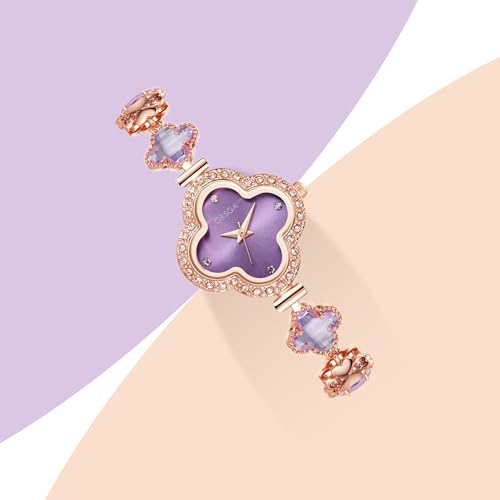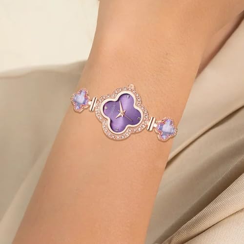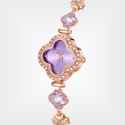 ORSGA Watch Bracelet Analog Clover Dial Wrist Watch for Ladies Luxury Diamond Stone Rose Gold Brass Strap Dress Watch for Women