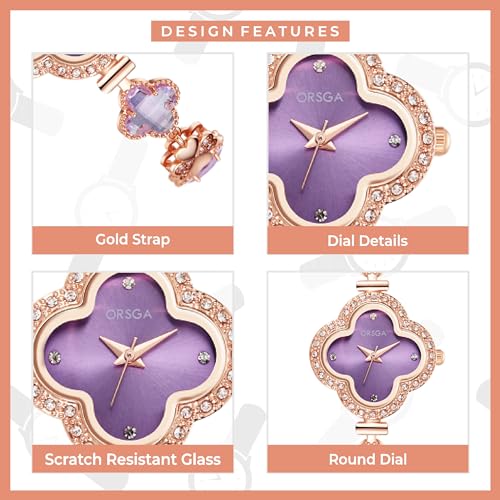 Be the first to review “ORSGA Watch Bracelet Analog Clover Dial Wrist Watch for Ladies Luxury Diamond Stone Rose Gold Brass Strap Dress Watch for Women”