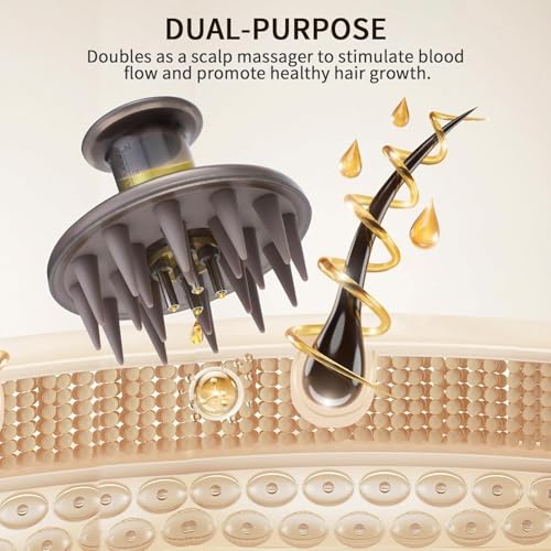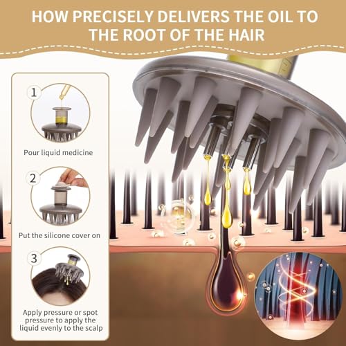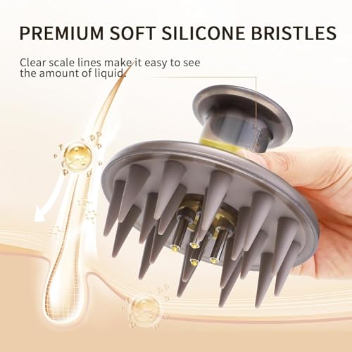 [Visual Oil Storage Tank]: The scalp massager applicator brush has a built-in 14ml reservoir that can be filled with enough oil at once. Oil tank with a clearly visible scale window to avoid liquid waste. Liquids are stored in the tank, no dirty hands, convenient to use.