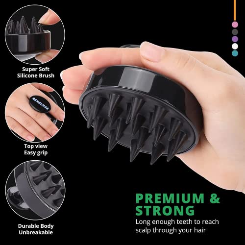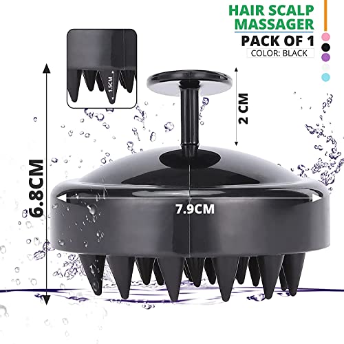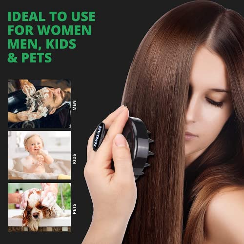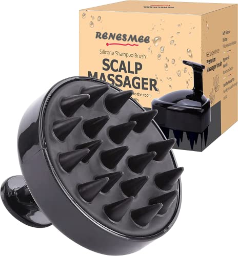 Renesmee Hair Scalp Shampoo Head Massager Brush, Exfoliator for Dandruff Removal, Waterproof Shower Scrubber Growth, Soft Silicone Bristles (Black)