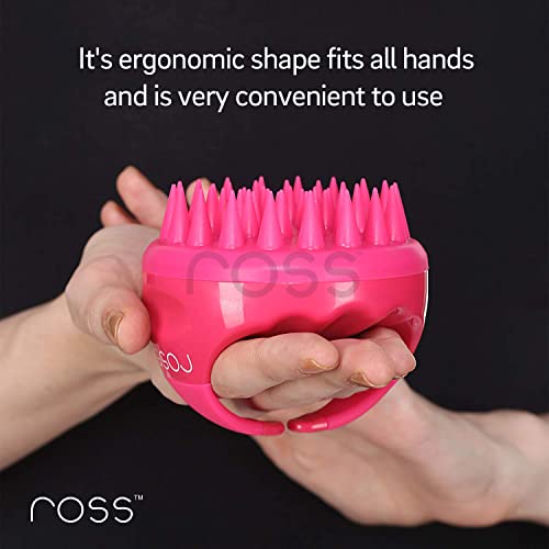 Ross Hair Scalp Manual Massager Shampoo Hair Brush with Soft Silicone Bristles for Anti Dandruff, Exfoliating Care (Pink)