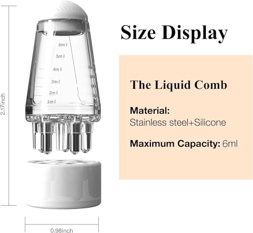 【Easy to Use】1 Lift the seal lid directly. 2 Fill the appropriate dosage into the graduated medicine bin. 3 Open the silicone base directly. 4 In the need to apply the place sliding, you can be out of the liquid. What’s more, the scalp applicator comb with scale, dosage of medicine at a glance.
