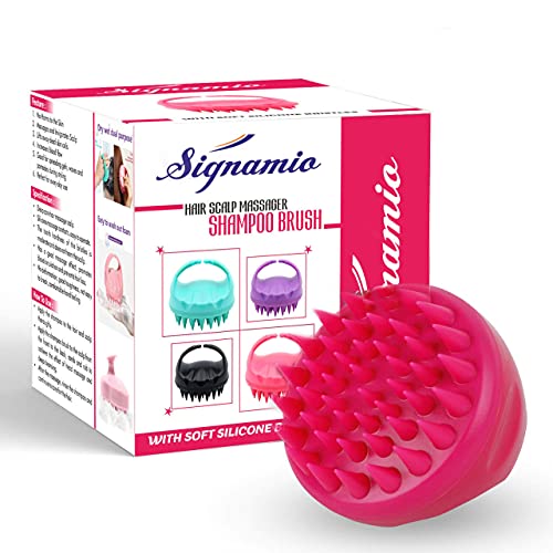 SIGNAMIO® Shampoo Brush Silicon Scalp Massager Hair Brush Wet Dry Comb Head Scrubber 100% Comfortable for Hair Improve Blood Circulation for Men,Women Pets – Pink – Pack 1