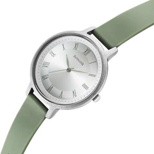 Sonata Polyurethane Silver Dial Analog Watch for Women-87049PP11W