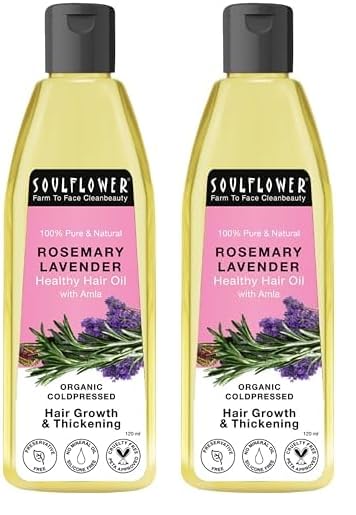 Soulflower Rosemary Lavender Hair Oil For Healthy Hair, Scalp Nourishment, Hair Growth – 100% Pure & Natural Undiluted Cold Pressed Oil, 120Ml (Pack of 2)