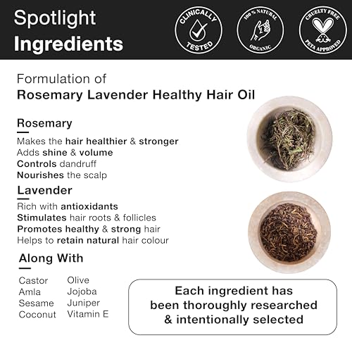 Rosemary Lavender Hair Oil Promotes Healthy Hair Growth Infused with the goodness of rosemary and lavender, this 100% pure, natural, and undiluted cold-pressed oil nourishes your scalp, promoting thicker, healthier hair growth.