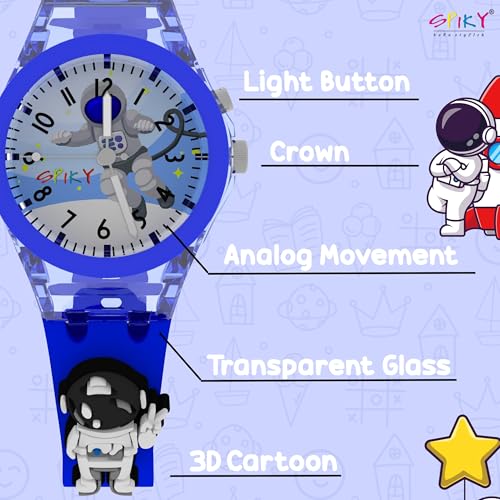 SPIKY Analog Watch for Kids | 3D Cartoon | 7 Multicolor LED Luminous Lights with Silicone Strap | Unisex Best Birthday Gift | Analogue Wrist Watches for Boys & Girls | Age 3-10 yrs