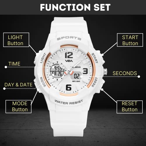 V2A Analog Digital 5ATM Waterproof Fashion Black Sports Watch for Women and Girls | Watch for Women | Ladies Watch | Wrist Watch for Women | Girls Watch