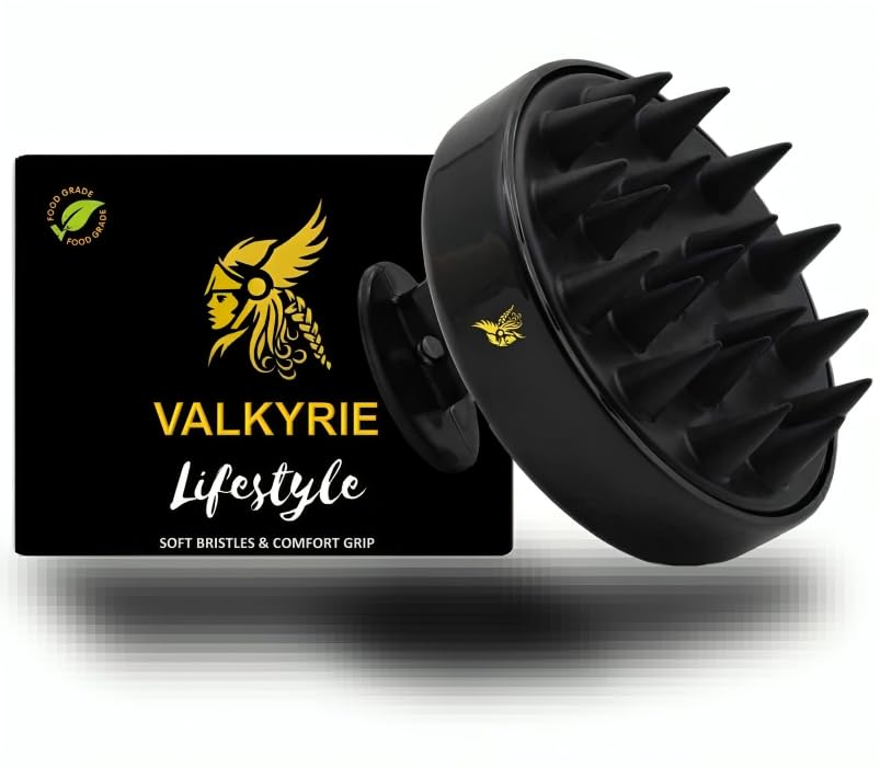 VALKYRIE Scalp Massager Shampoo Brush, Wheat Straw body with Soft Silicon Bristles, Hair Scalp Scrubber, Scalp Exfoliator | Dandruff Removal, Prevents Hair loss for Men & Women (BLCK2)